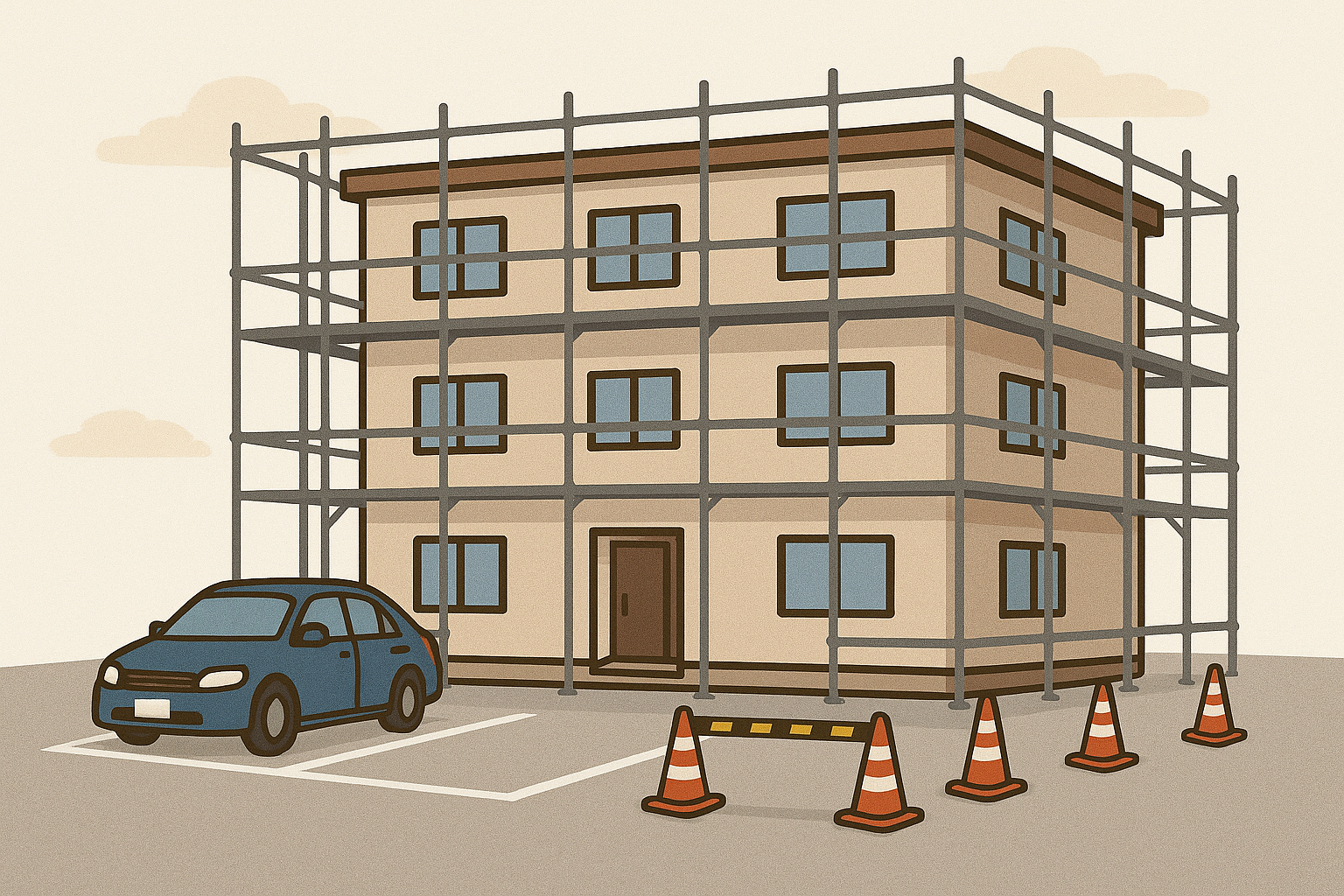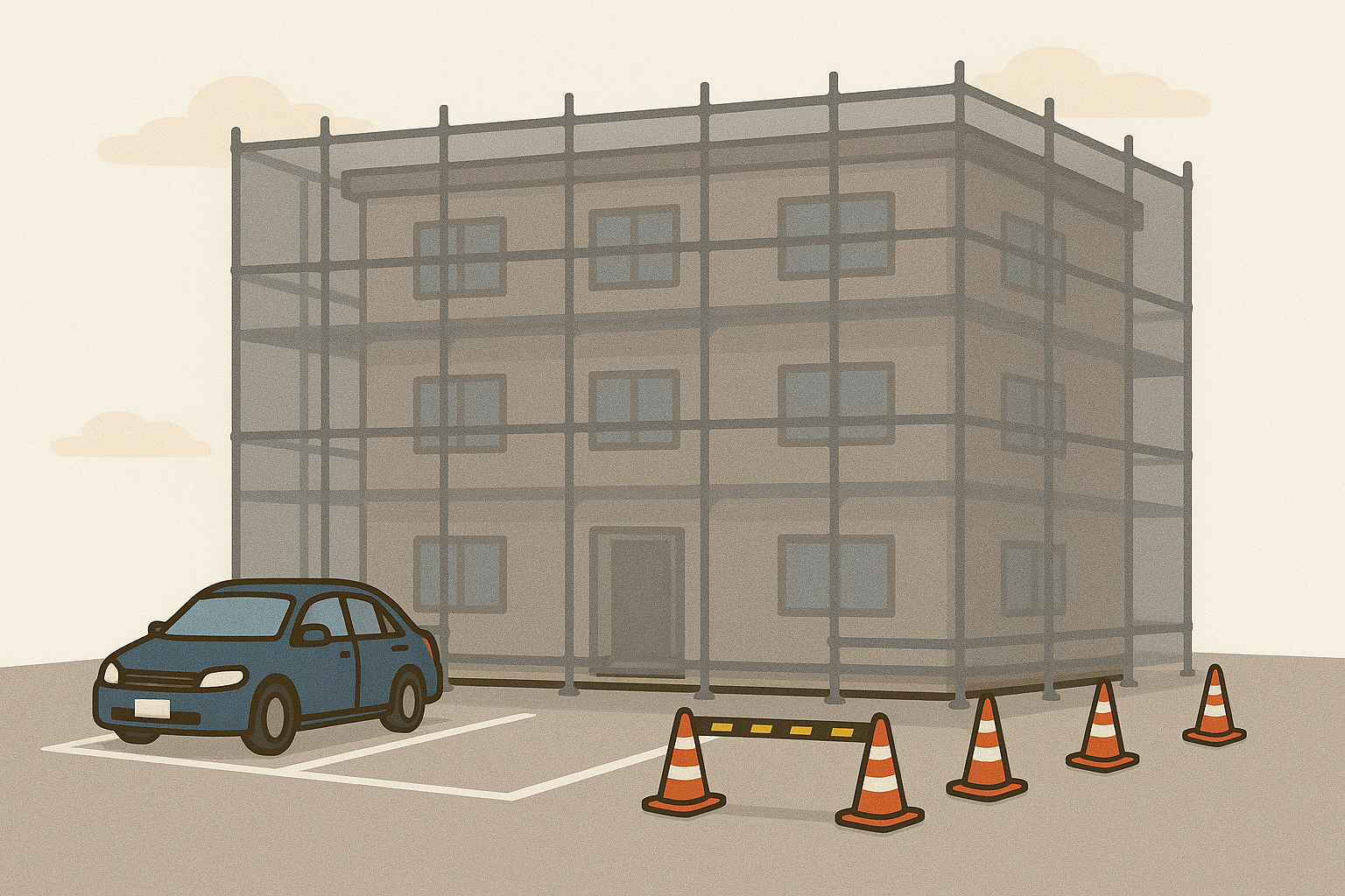 足場仮設中は大きな音や車両の出入りが増えるため、