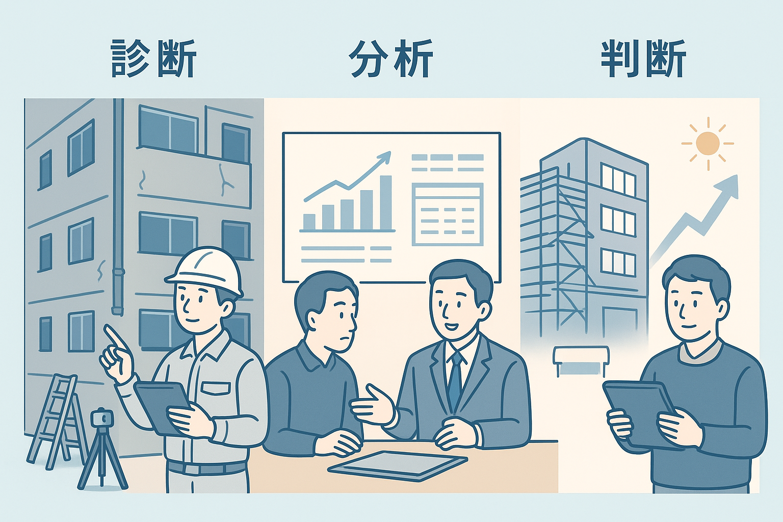建物の劣化状況・立地条件・将来の収益性を総合的に判断し、