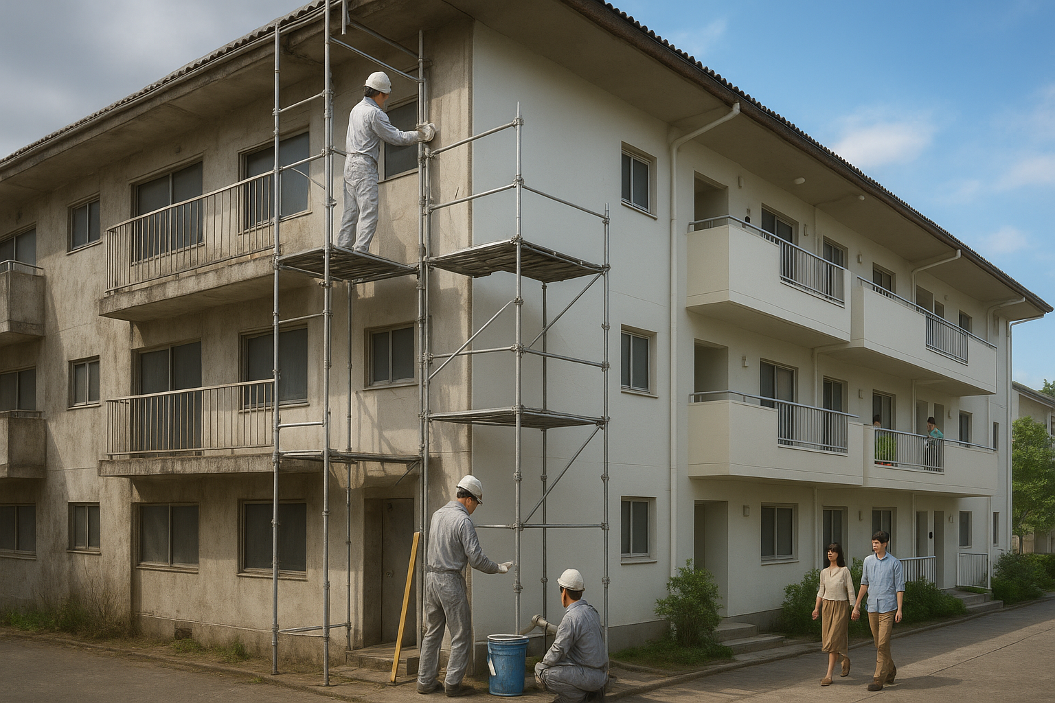 外壁や屋根の塗装、防水改修、共用部のリニューアルを行うことで、
